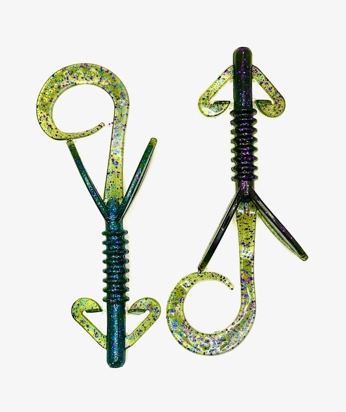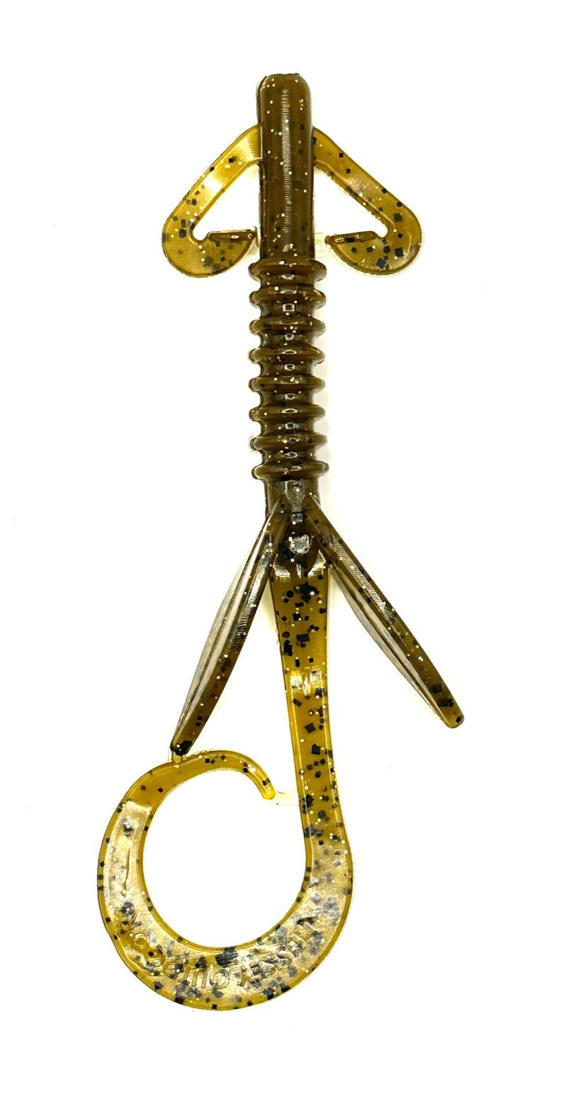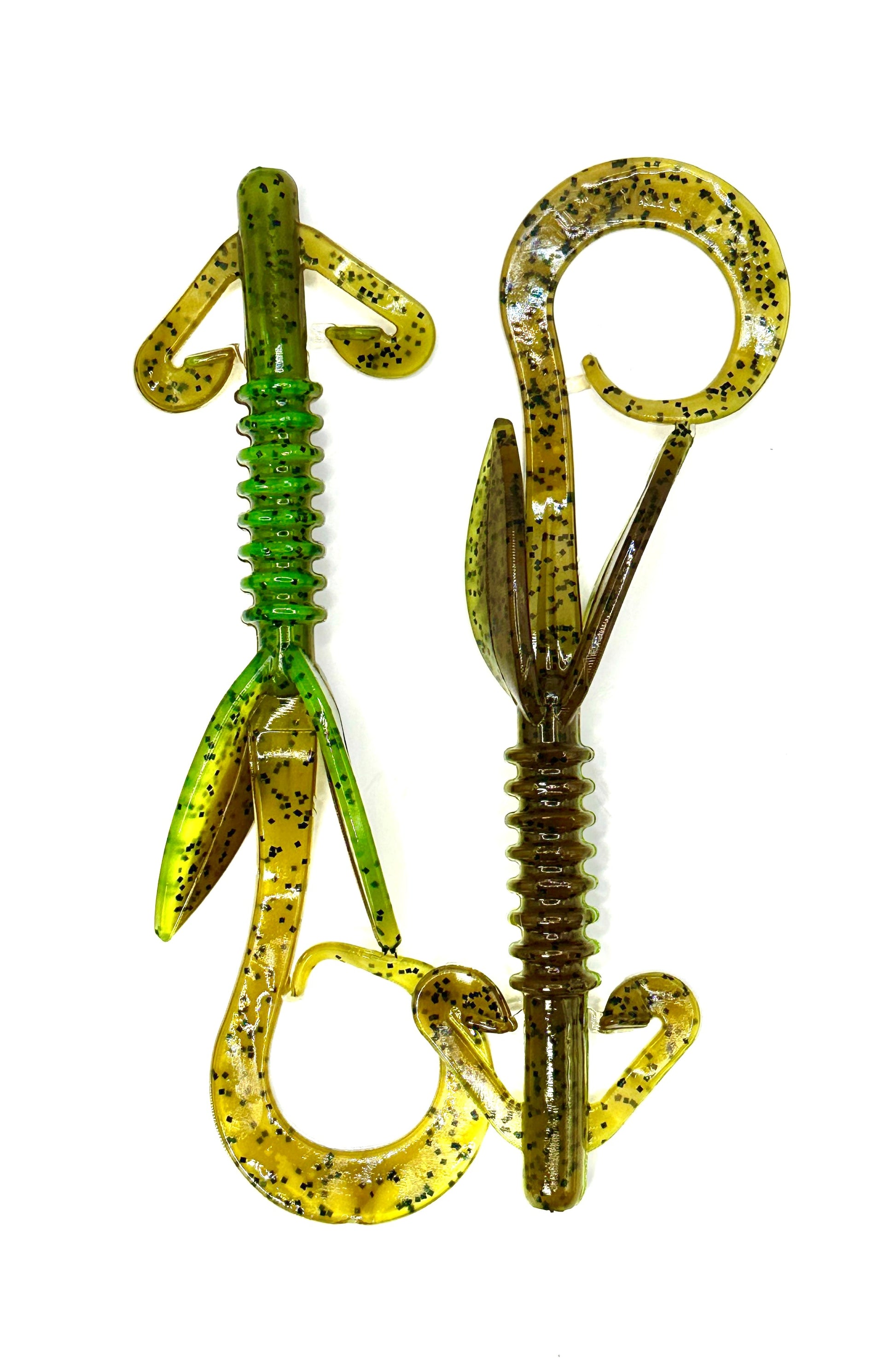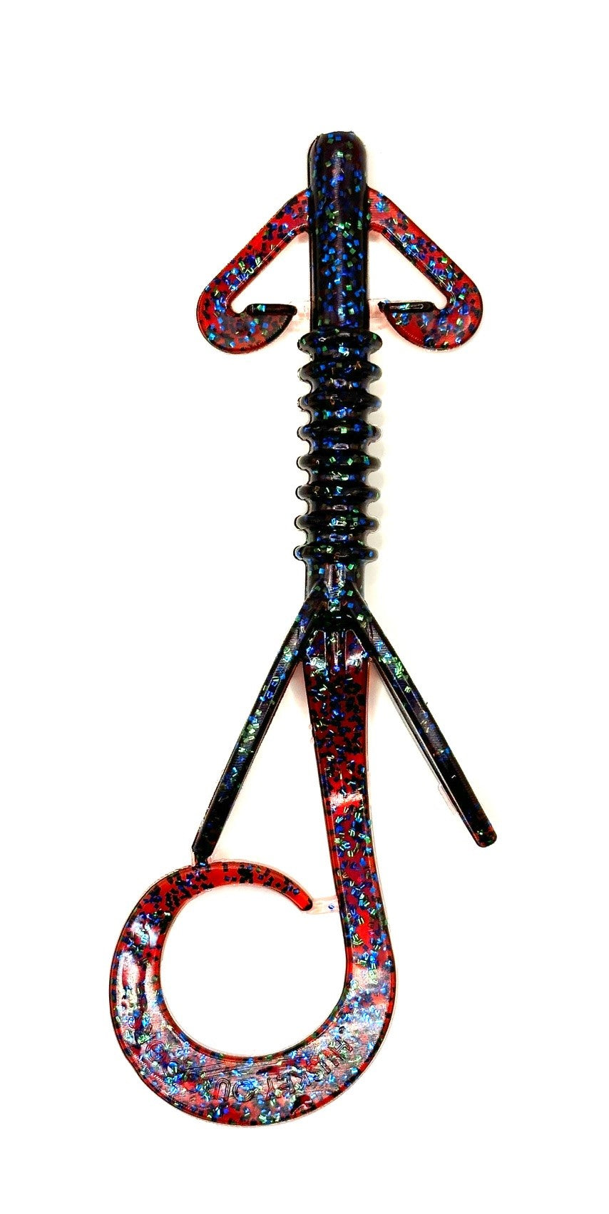 The Freak!! The 10" hybrid worm that just flat catches bigs. Ribbed hook point area for an improved snag free design. Flappers to add bulk and legs towards the nose to create a shad like vibration. This worm was specifically designed to flip trees and docks to get bites on the fall but works in any situation where a big worm is used.